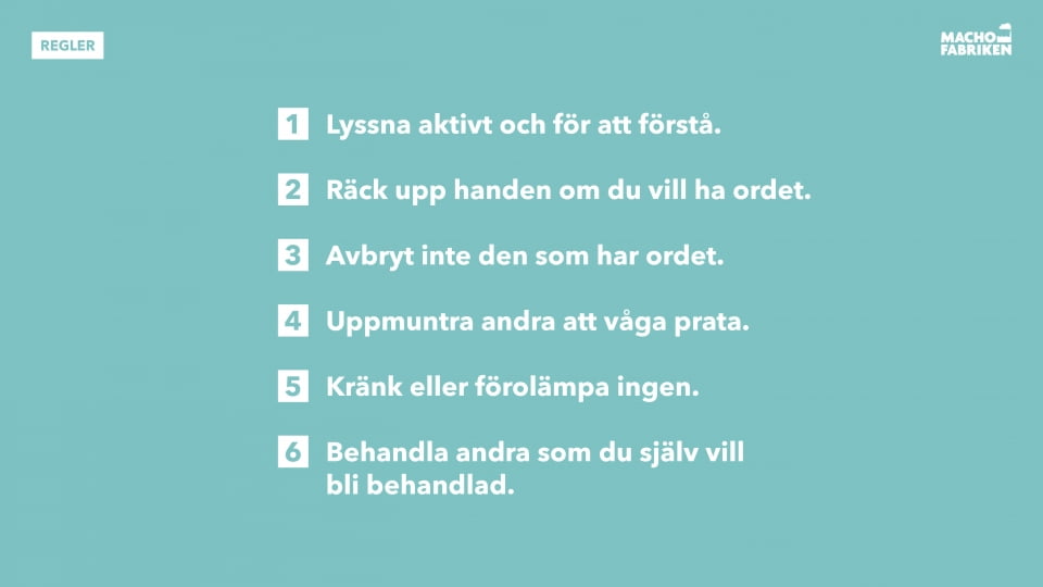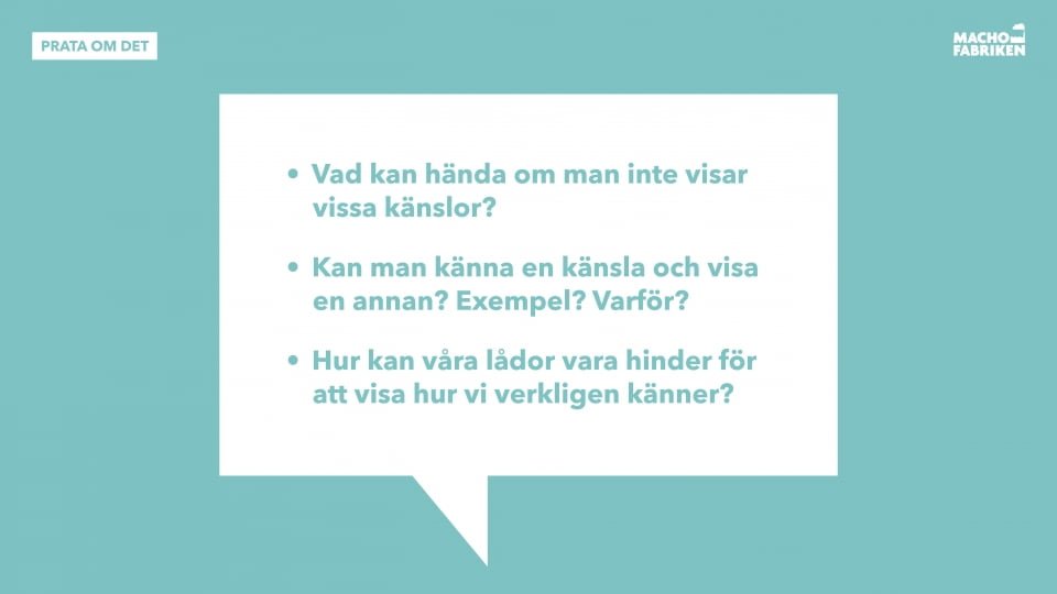- Gruppen ska sedan gemensamt fundera över: I vilka sammanhang kan det vara svårt att uttrycka den känslan? Varför?