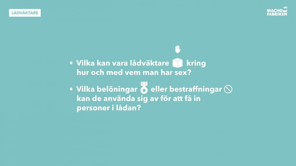 Syfte: Att sätta ord på hur förväntningar och normer upprätthålls genom andras och egna handlingar, samt hur detta kan te sig för olika människor i olika sammanhang. Till exempel i kommentarsfält, på skolgårdar eller under familjemiddagar.