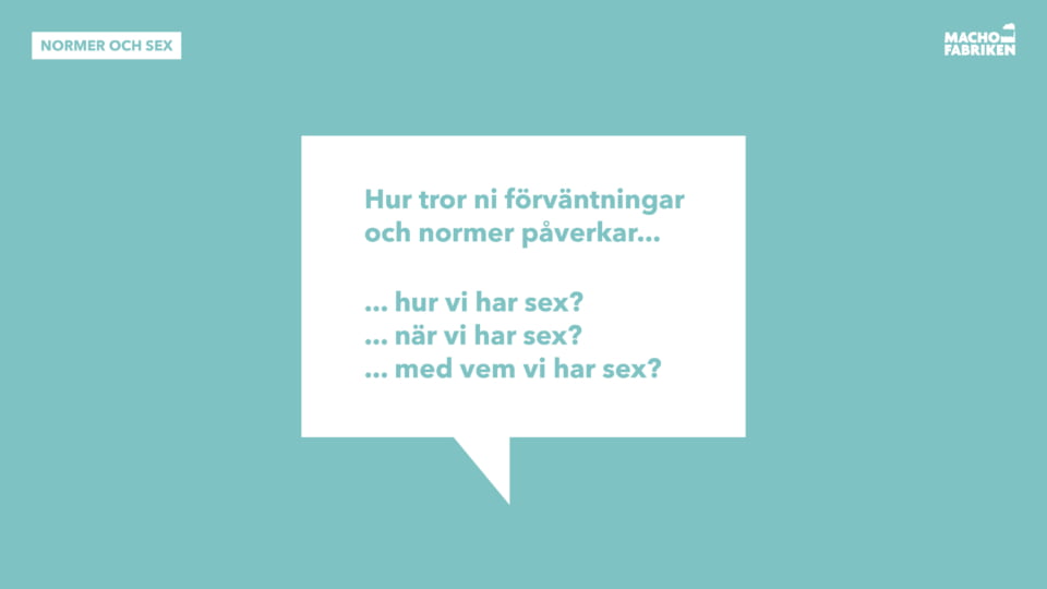 Syfte: Att väcka funderingar kring hur våra föreställningar och förväntningar på maskulinitet och femininitet kan prägla hur, eller om, vi har sex.